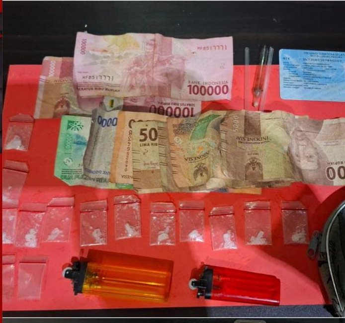 Hasilnya cukup mengejutkan, petugas menemukan 11 plastik klip bening berisi sabu yang disembunyikan di dalam sebuah dompet berwarna abu-abu merk Mas Medan. Selain narkotika, polisi juga menyita uang tunai sebesar Rp255.000,- yang diduga kuat merupakan uang hasil transaksi haram tersebut.
