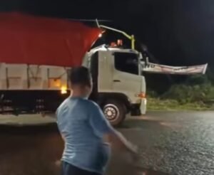 Salah seorang warga setempat menyampaikan peringatan keras kepada para sopir truk batu bara agar tidak lagi mencoba melanggar aturan yang berlaku.